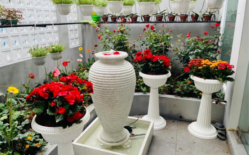 - Trong sân vườn: Đặt lu nước trang trí trong sân vườn kết hợp tiểu cảnh ví dụ hồ cá, sỏi đá, cây cảnh… giúp tạo không gian thư giãn và hài hòa.