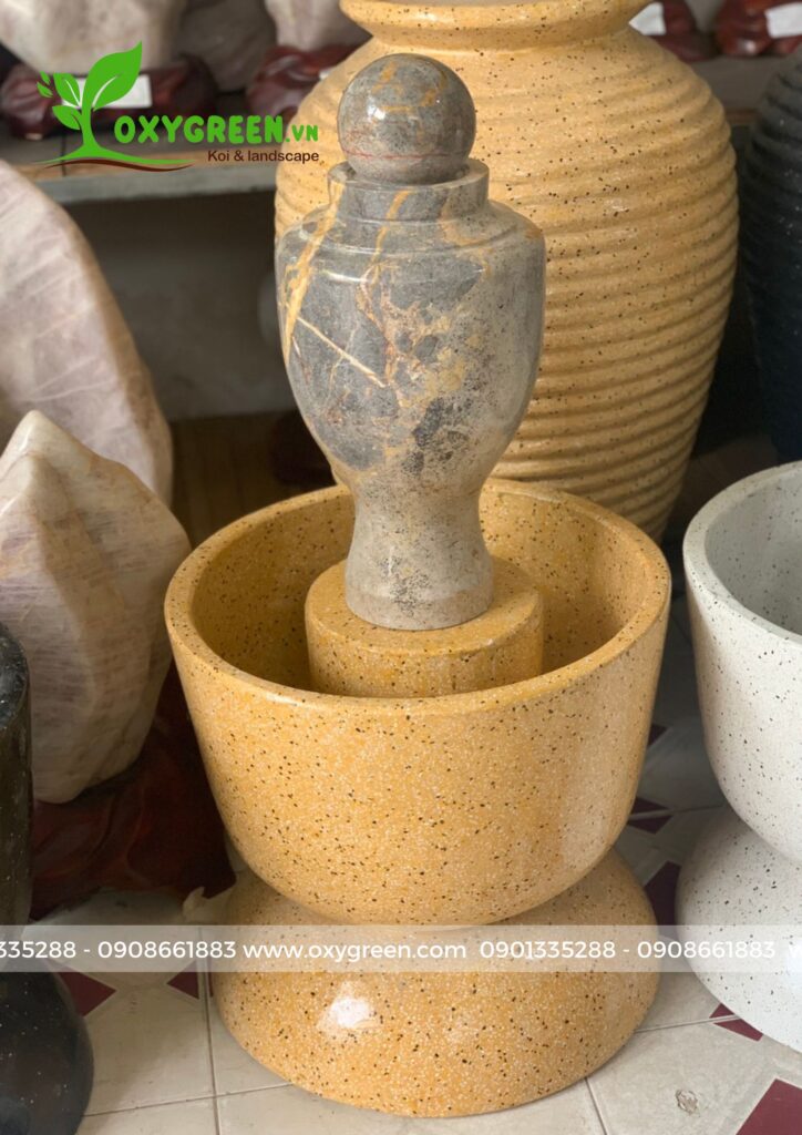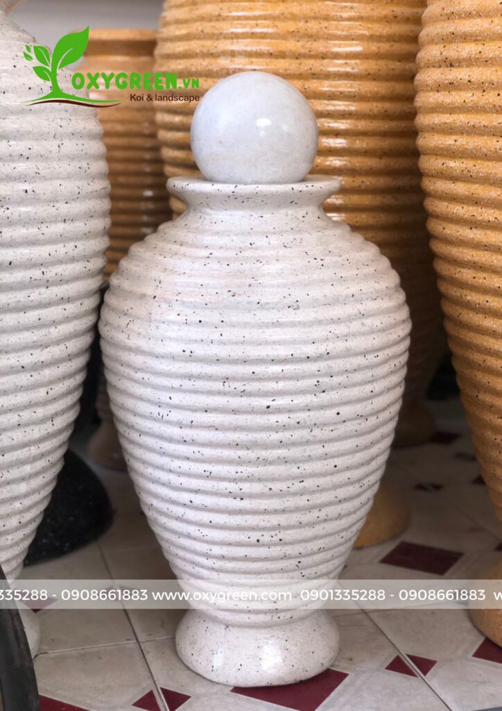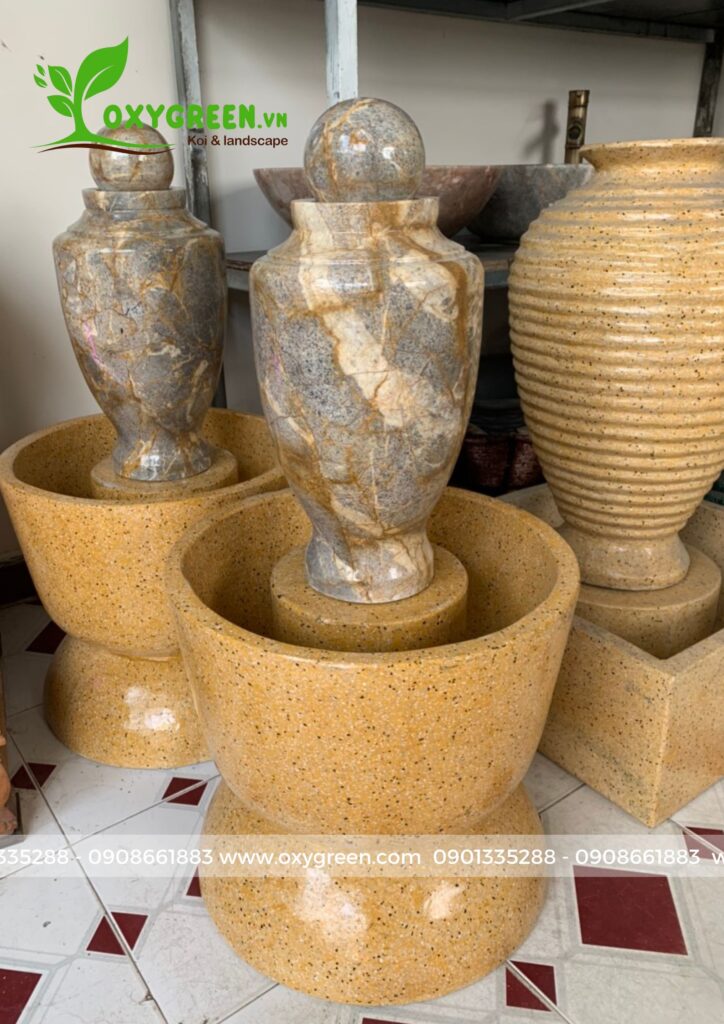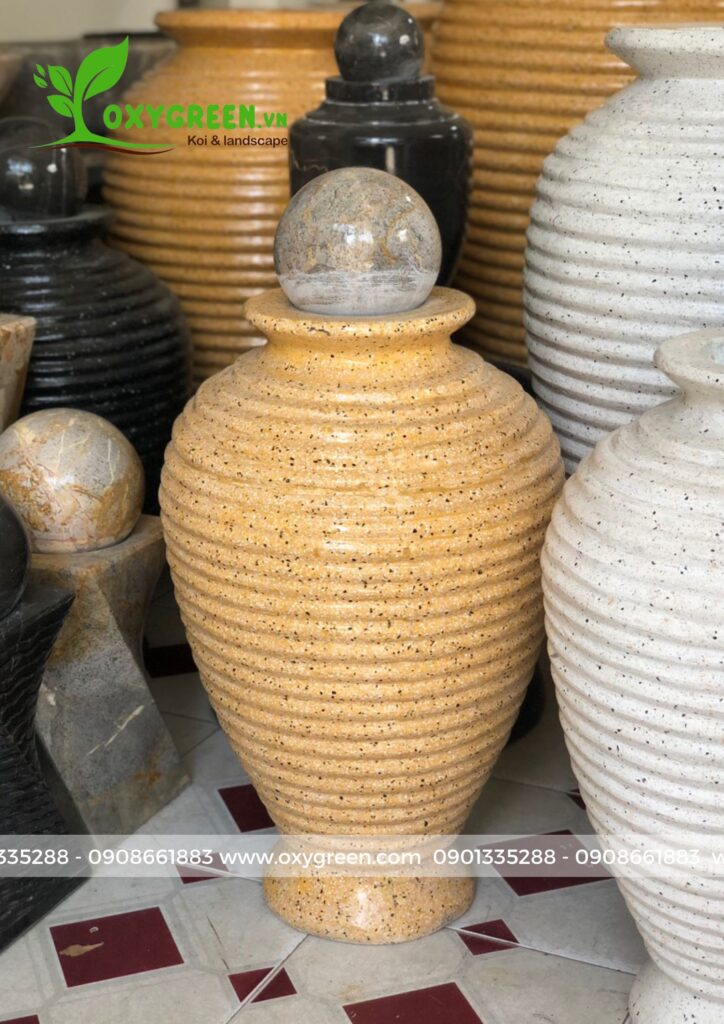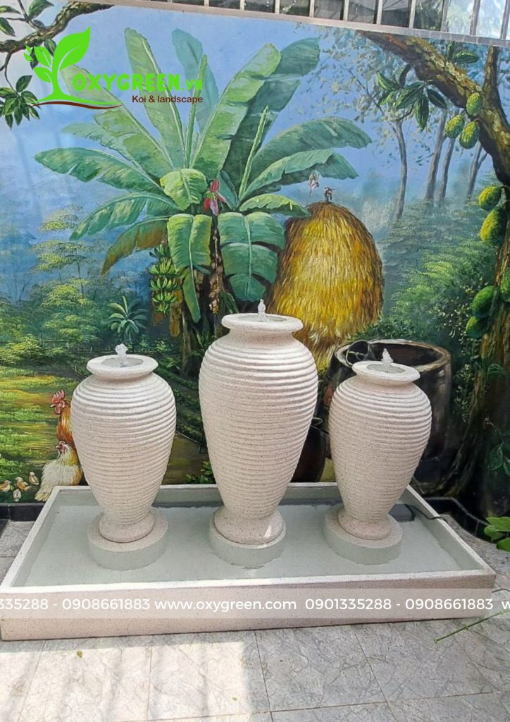 Ưu điểm: Lu phong thủy (lộc thuỷ bình) đá mài là sự kết hợp hoàn hảo giữa tĩnh và động trong thiết kế cảnh quan. Với chất liệu xi măng đá mài và họa tiết sọc ngang nổi, lu phong thủy mang đến vẻ đẹp hiện đại, tinh tế. Đặt trong không gian sống, lu phun nước không chỉ tạo điểm nhấn thẩm mỹ mà còn giúp lan tỏa năng lượng tích cực, tăng cường vận khí, đồng thời thể hiện gu thẩm mỹ độc đáo của gia chủ.