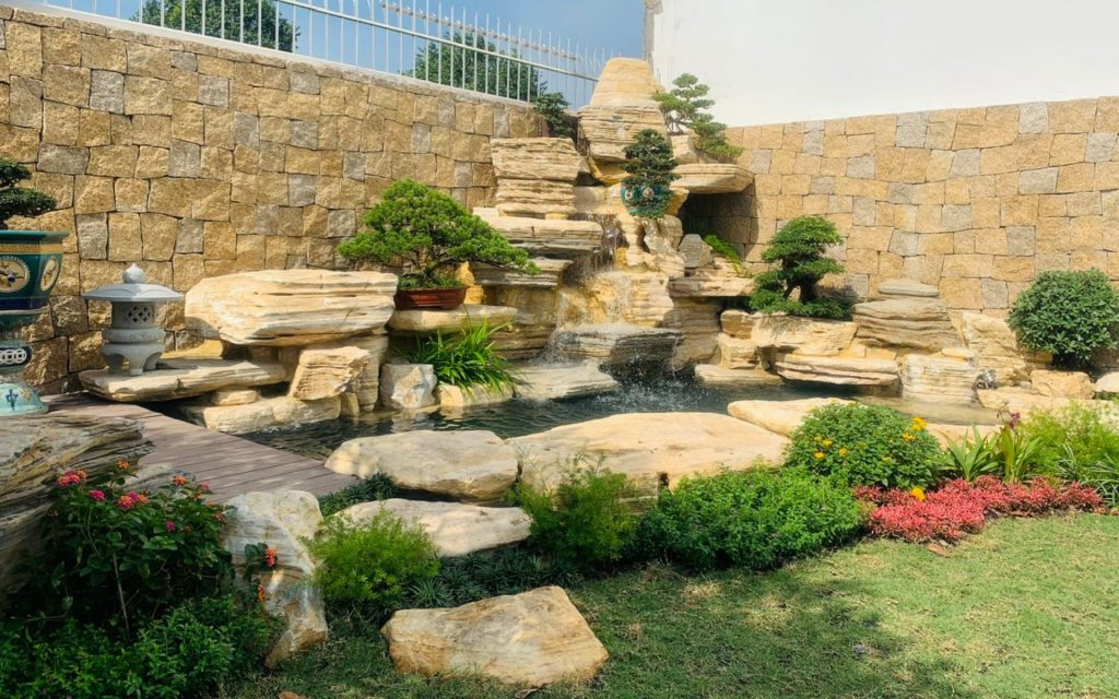 Sân vườn kết hợp Hồ Cá Koi và Hòn Non Bộ