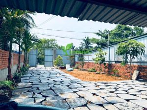 Lát đá sân vườn bằng đá bước dặm là phương án thi công phổ biến...