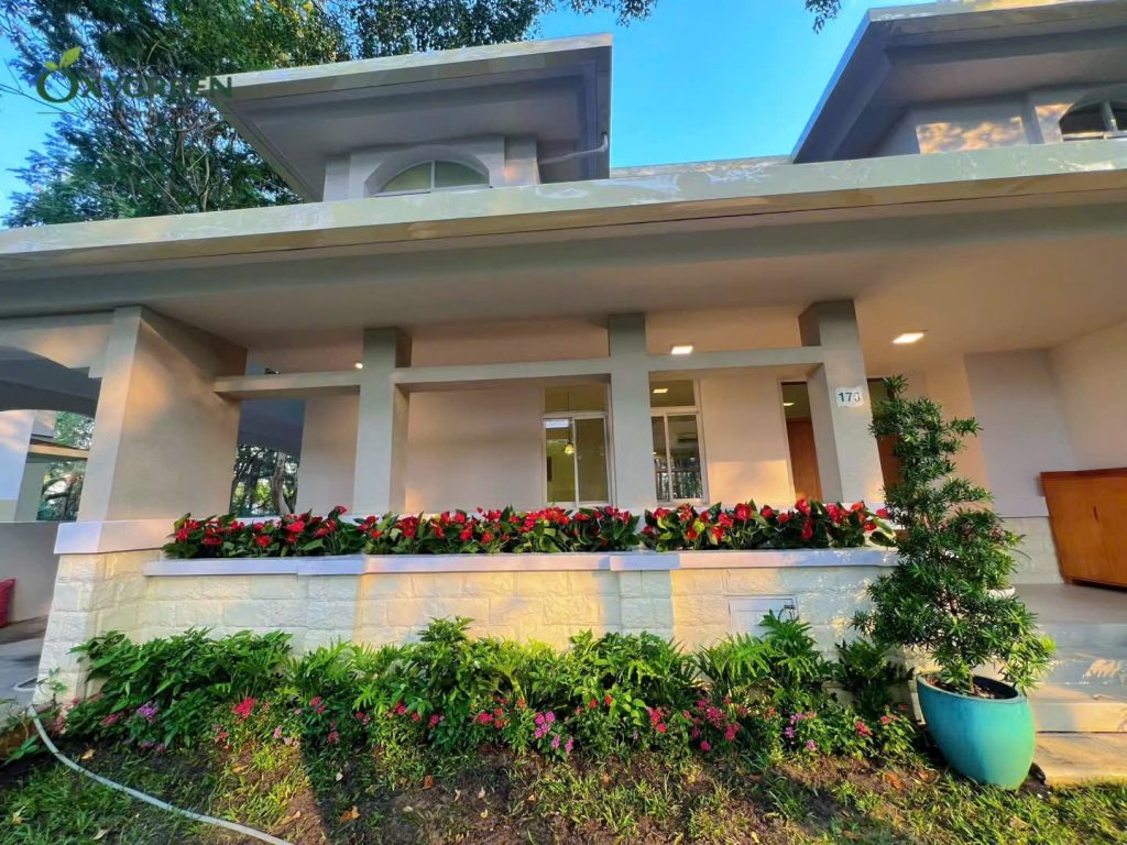 Một khu vườn đẹp không chỉ nằm ở diện tích rộng hay nhiều cây xanh, mà nằm ở cách bố trí cảnh quan hài hòa với kiến trúc và cách con người sử dụng không gian mỗi ngày. Tại công trình biệt thự ở Quận 7, đội ngũ Oxygreen đã thực hiện dự án cải tạo sân vườn với mục tiêu làm mới toàn bộ các bồn cây quanh nhà, tạo nên một không gian xanh gọn gàng, sinh động nhưng vẫn giữ được sự tự nhiên của khu vườn.