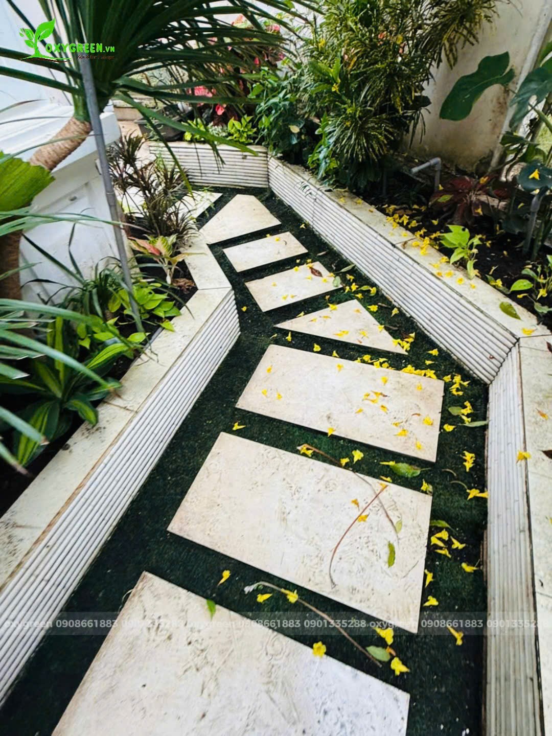 Lối đi vốn mờ nhạt nay trở nên sạch sẽ, sáng rõ, kết nối liền mạch giữa các góc nhỏ trong sân vườn. Mỗi gốc cây, mỗi cụm lá đều được chăm chút tỉ mỉ, để khi gia chủ bước ra, cảm giác đầu tiên chính là sự thư giãn và tươi mới.