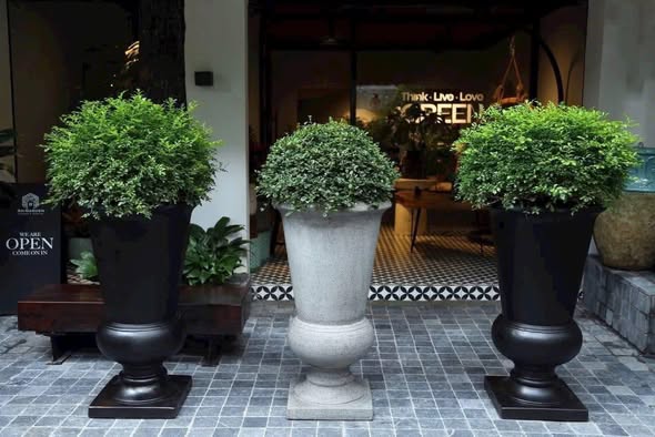 Trồng cây bằng chậu xi măng cho quán Cafe