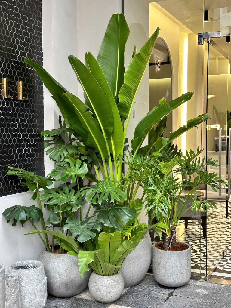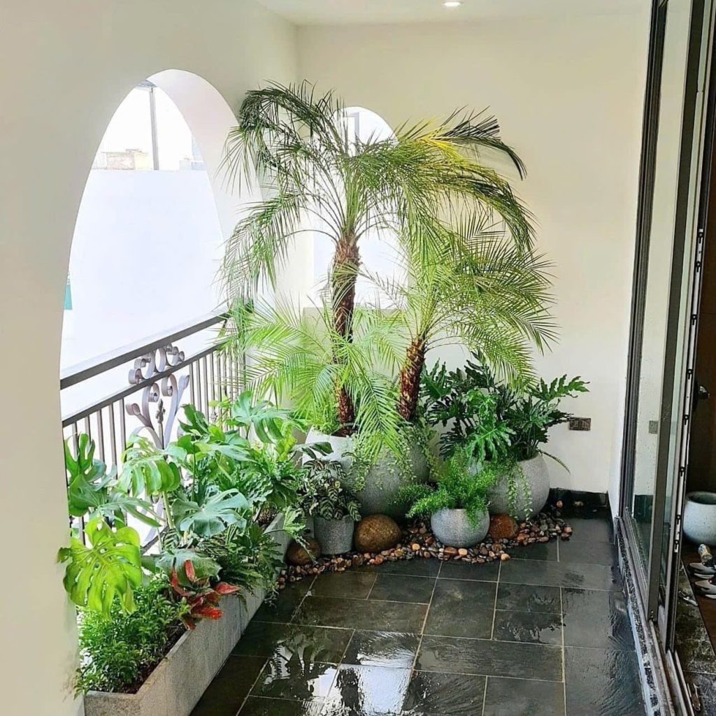 Bố trí chậu hợp lý trong không gian: Tránh đặt chậu quá dày gây rối mắt, nên sắp xếp theo nhóm hoặc theo chiều cao để tạo điểm nhấn.