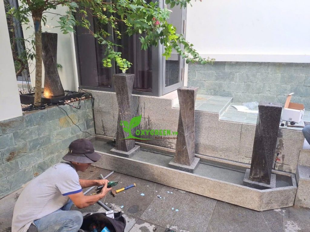 - Tạo điểm nhấn: Một tiểu cảnh nhỏ, đài phun nước mini hay một góc cây xanh độc đáo sẽ làm sân vườn nổi bật hơn.