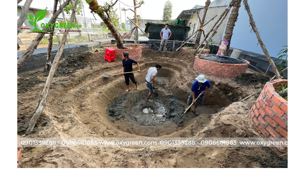 3. Quy trình thi công hồ cá Koi lót bạt nhựa HDPE
