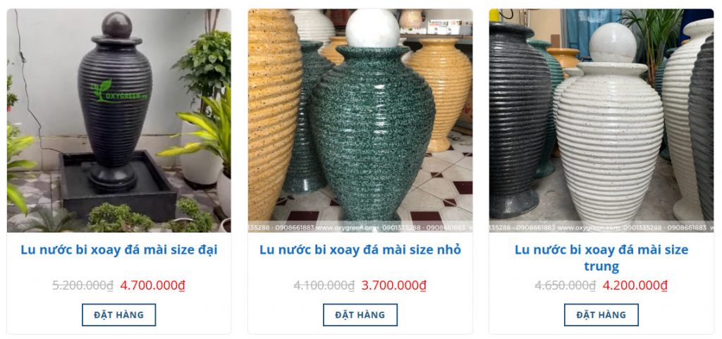 Ngoài ra, OxyGreen còn cung cấp đa dạng các sản phẩm phong thủy như lu nước trang trí, lu nước đá mài, trụ nước bi xoay, lu phun nước, và nhiều mặt hàng phong thủy khác.