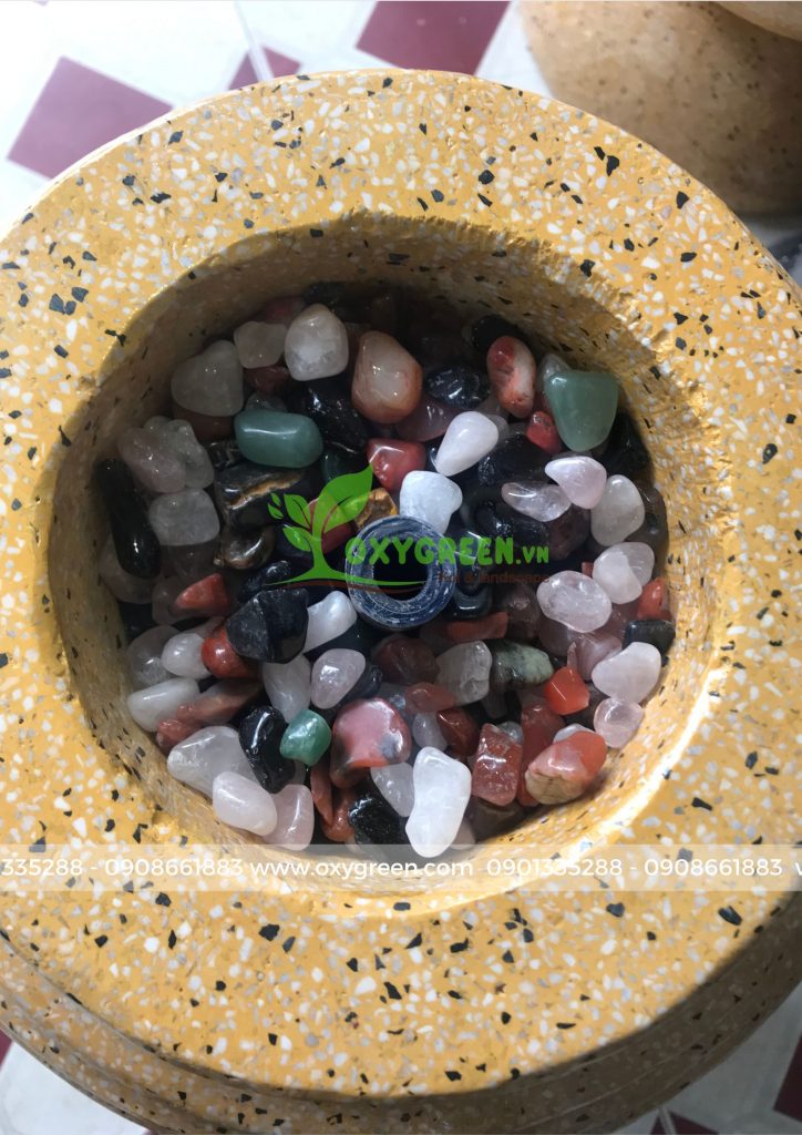 2. Kết hợp lu nước phong thủy với đá thạch anh vụn đánh bóng: