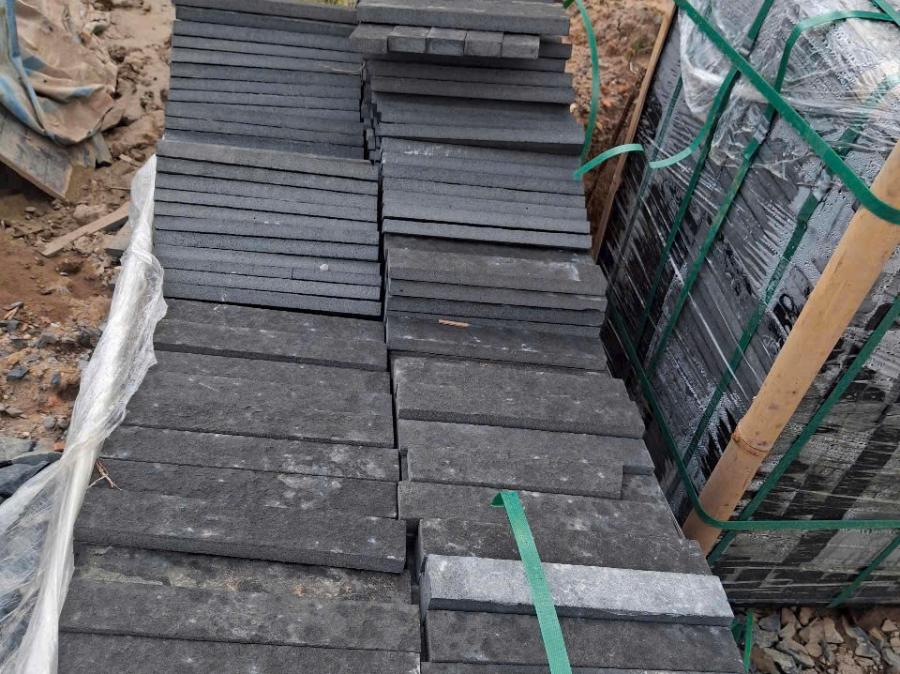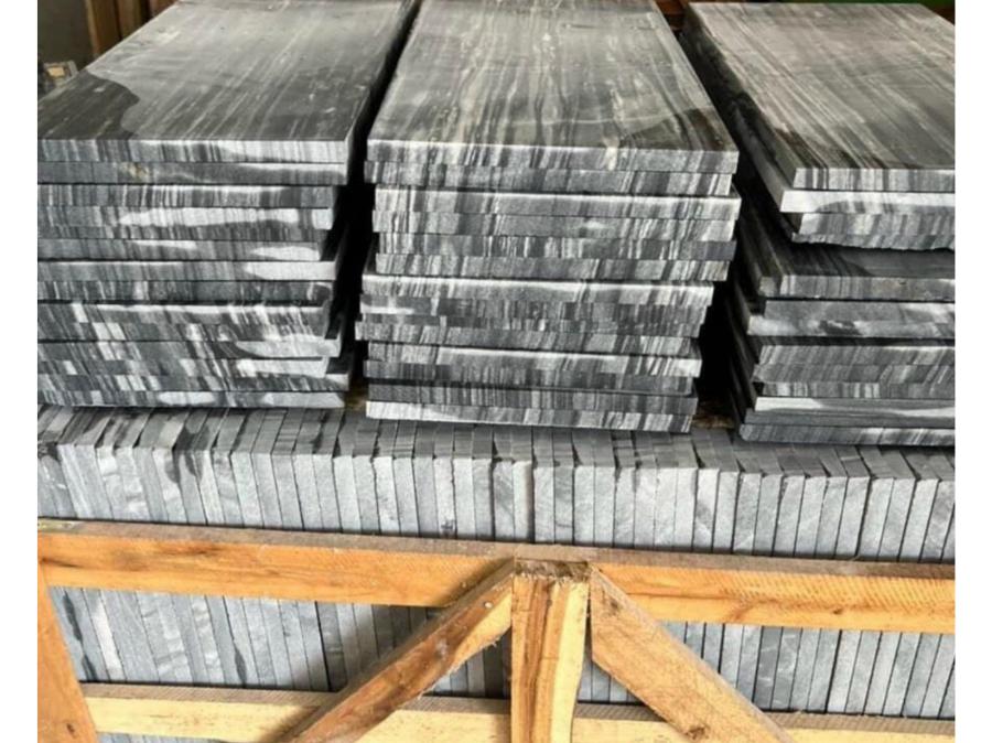 Bề mặt được xử lý khò lửa để tạo độ nhám, chống trượt hiệu quả. Màu đen mạnh mẽ, thường dùng lát bậc tam cấp, lối đi chính hoặc sân nhà phong cách hiện đại.