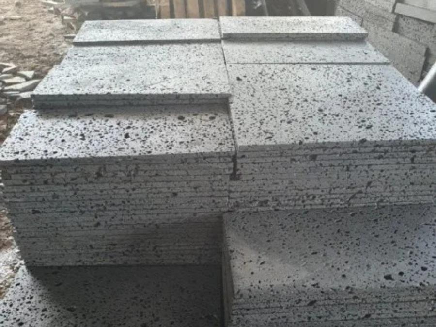 Bề mặt có nhiều lỗ nhỏ, chống trơn tốt. Màu xám hoặc ghi đậm, dễ phối với các loại vật liệu khác. Rất hợp cho sân vườn có nhiều cây xanh hoặc tiểu cảnh nước.
