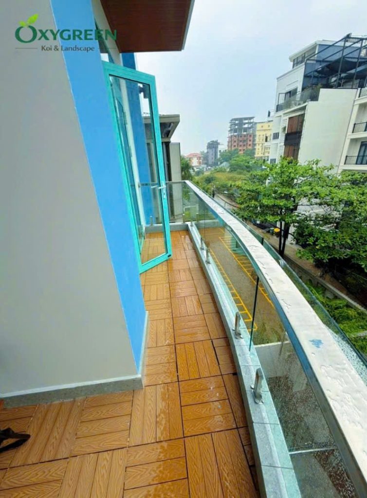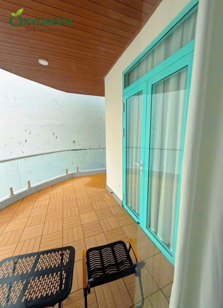 Sau khi hoàn tất việc trồng cây, toàn bộ khu vực được vệ sinh và sắp xếp lại để đảm bảo tính thẩm mỹ cao nhất. Không gian ban công được kết hợp thêm khu vực ngồi thư giãn, tạo nên nơi nghỉ ngơi lý tưởng ngay tại nhà. Các lối đi vẫn được giữ rộng rãi, thuận tiện cho sinh hoạt hằng ngày nhưng đồng thời được bao phủ bởi mảng xanh nhẹ nhàng.