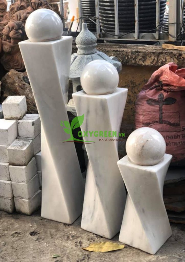 - Thiết kế độc đáo: Thường có dạng trụ đứng với đường nét vân đá tự nhiên, kết hợp với bề mặt được gia công để tạo hiệu ứng nước chảy mềm mại.