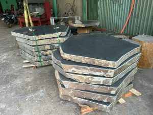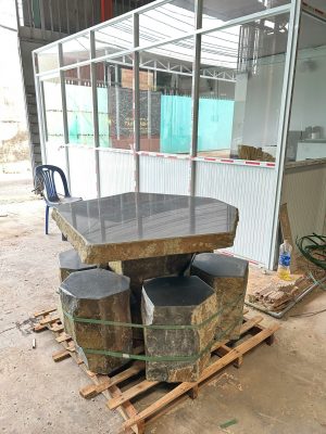 Bàn ghế đá bazan được chế tác từ đá bazan tự nhiên có độ cứng cao, màu xám đen đặc trưng, mang lại cảm giác mộc mạc nhưng hiện đại. Nhờ bề mặt chắc chắn, chịu lực và chịu thời tiết tốt, bộ bàn ghế này rất phù hợp cho sân vườn, sân thượng, hồ cá Koi, khu BBQ hay công trình cảnh quan ngoài trời.