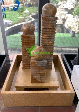 - Phụ kiện gồm: 3 trụ đá kèm bi xoay, 1 đế, 1 chậu vuông, 1 máy bơm