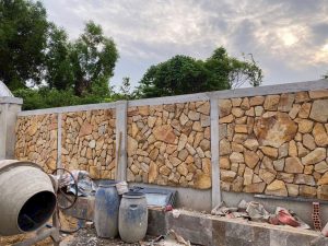 Đá rối vàng ánh kim được ưa chuộng trong ốp tường sân vườn, trụ cổng, mặt tiền, tiểu cảnh nước và lối đi nhờ độ cứng cao – bền màu – chịu nắng mưa tốt. Tone vàng ánh kim mang lại cảm giác ấm áp, sang trọng nhưng vẫn rất tự nhiên, phù hợp nhiều phong cách từ hiện đại đến resort nhiệt đới.