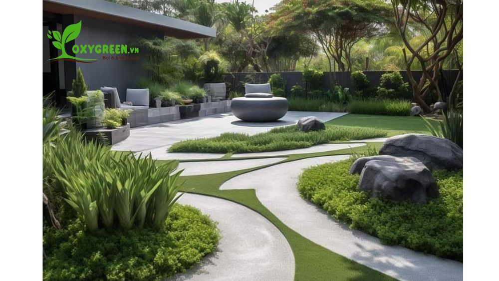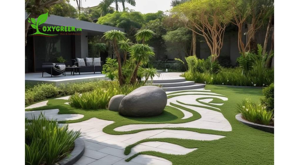 - Sân vườn Việt Nam hiện đại: Vẫn giữ được sự gần gũi với thiên nhiên và văn hóa địa phương, sân vườn Việt Nam hiện đại thường kết hợp các cây cảnh bản địa như cau, dừa, chuối cùng với hồ cá nhỏ hay ao sen. Đây là phong cách kết hợp giữa truyền thống và hiện đại, mang đến không gian xanh mát và thư giãn.