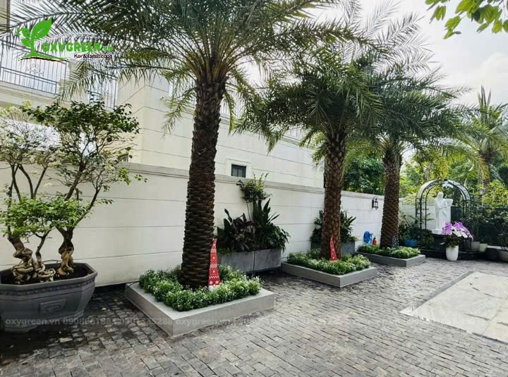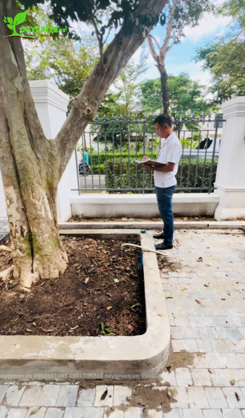 Trong quá trình thi công, từng vị trí cây được cân nhắc kỹ lưỡng nhằm đảm bảo khi cây phát triển sẽ không che khuất lối đi, không ảnh hưởng sinh hoạt và vẫn giữ được sự thông thoáng. Công tác thi công được thực hiện gọn gàng, hạn chế tối đa việc ảnh hưởng đến nền sân và các khu vực xung quanh.