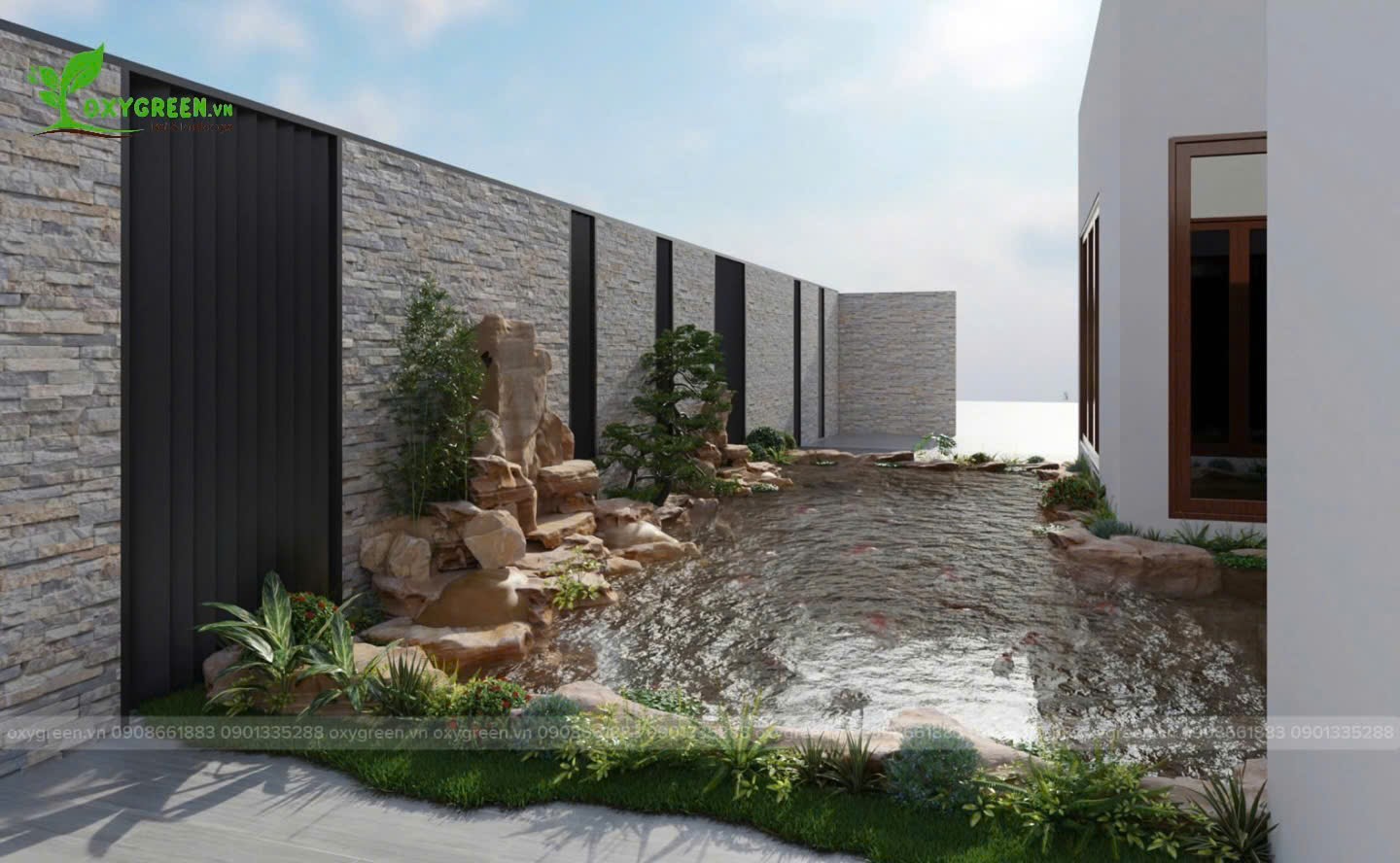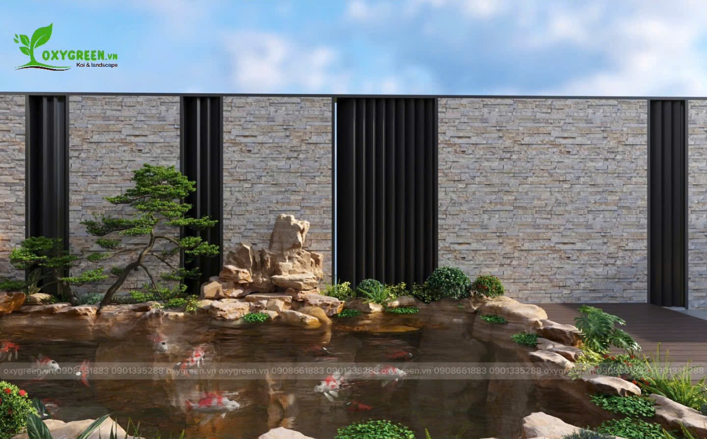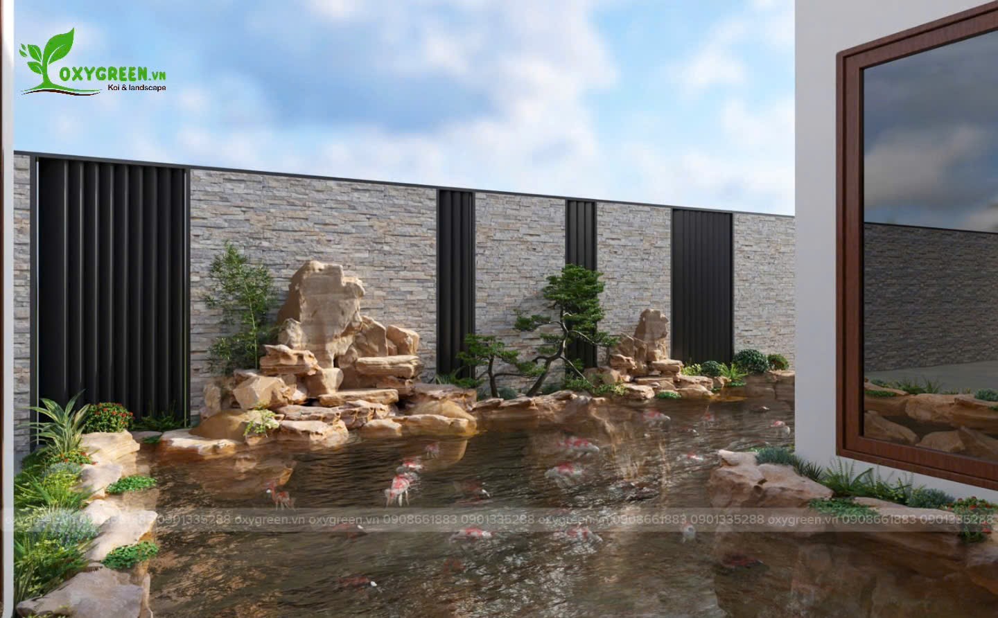 Công trình dưới đây là một dự án thực tế do Oxygreen trực tiếp khảo sát hiện trạng, lên phương án thiết kế theo không gian nhà phố và thi công trọn gói tại công trình. Toàn bộ bố cục hòn non bộ, hồ cá Koi và lối đi được triển khai đồng bộ ngay từ đầu, đảm bảo tính thẩm mỹ, sự hài hòa với kiến trúc và thuận tiện trong quá trình sử dụng lâu dài.