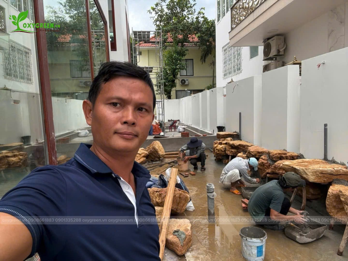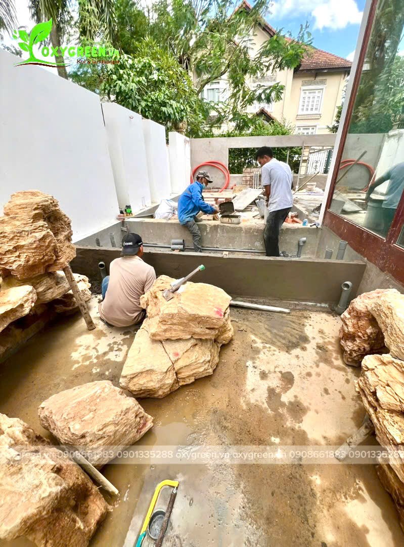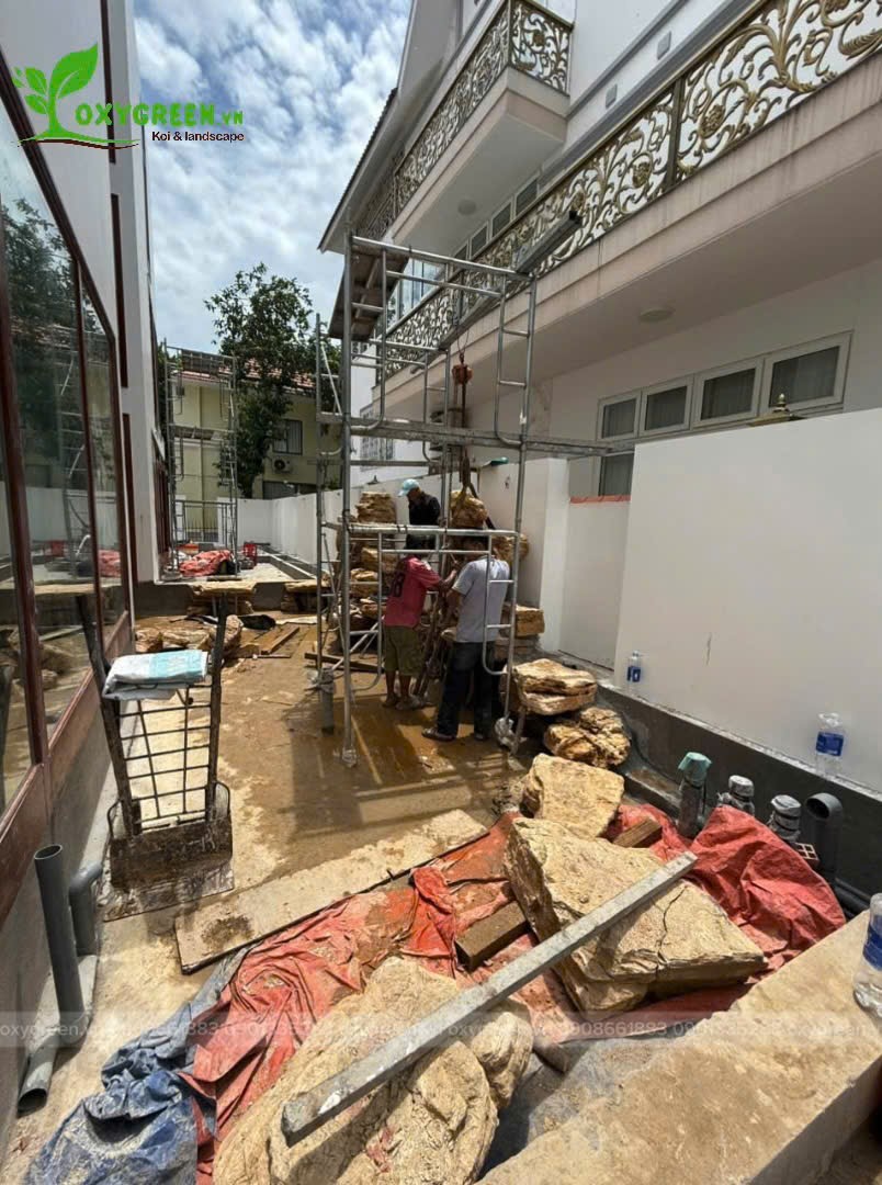 Trong suốt quá trình thi công, OxyGreen kiểm soát chặt chẽ từng hạng mục, từ vị trí xếp đá, độ dốc dòng nước cho đến sự cân đối giữa hòn non bộ và hồ cá Koi. Nhờ đó, công trình không chỉ đạt yêu cầu về thẩm mỹ mà còn đảm bảo sự ổn định, bền vững khi đưa vào sử dụng lâu dài.