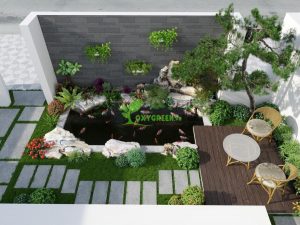 Chị Dương đã yêu cầu Oxygreen thiết kế một sân vườn mang phong cách Nhật...