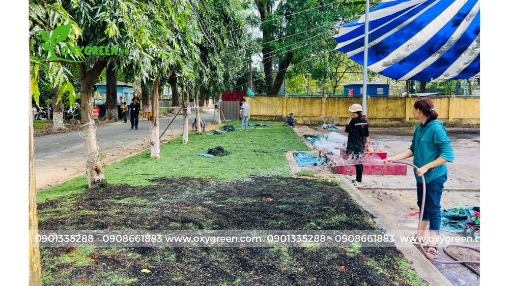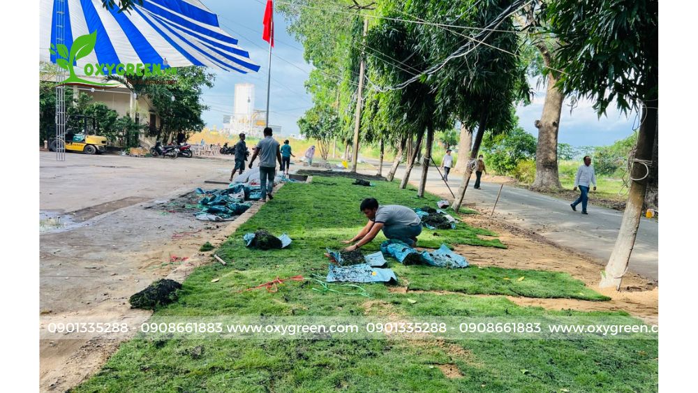 Vừa qua, Oxygreen đã hoàn thành công trình thảm cỏ rộng 2.200m² chỉ trong 2 ngày, tạo ra một không gian xanh mát cho khu vực công cộng tại quận Tân Bình. Việc trồng thảm cỏ ở nơi công cộng không chỉ mang lại giá trị thẩm mỹ mà còn góp phần cải thiện tinh thần và sức khỏe cho người dân. Những mảng cỏ xanh tươi giúp lọc không khí, tạo cảm giác dễ chịu và làm nổi bật cảnh quan xung quanh.