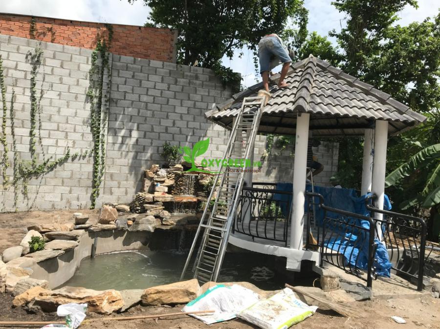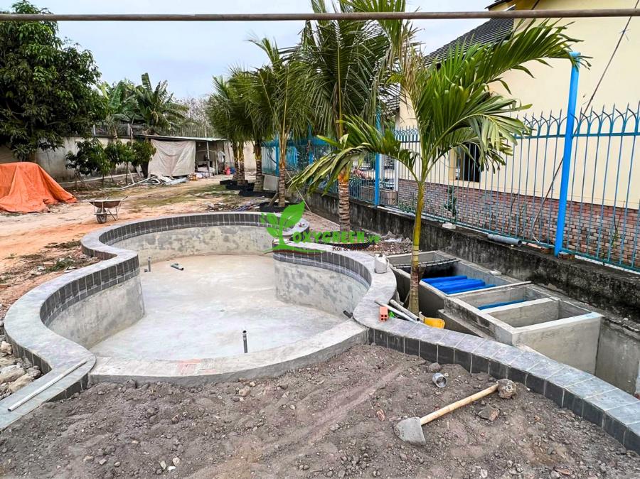 Thi công hồ Koi hoàn chỉnh với hệ thống lọc, cấp thoát nước